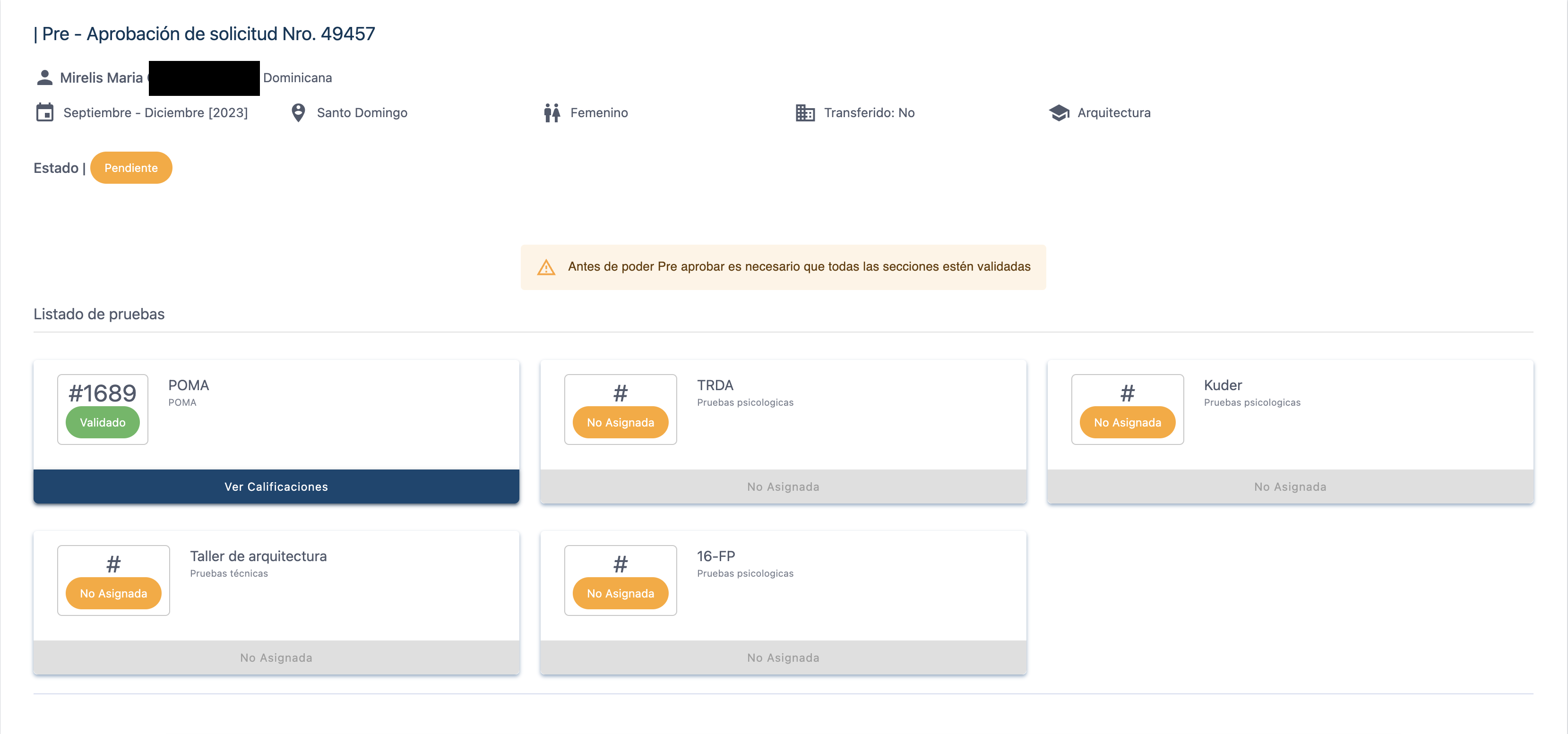 Después de que un solicitante ha pasado las pruebas y su solicitud ha sido pre-aprobada (POMA), la aprobación final es realizada por los directores de escuela. Este paso consiste en que los directores de las carreras a las que el solicitante ha aplicado revisen toda la documentación, los resultados de las pruebas y otros criterios para aprobar o rechazar la solicitud de admisión.